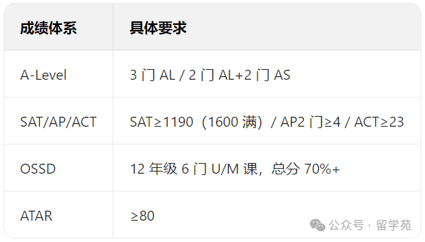 国际生:A-Level/SAT/OSSD 都认,分数门槛清晰
