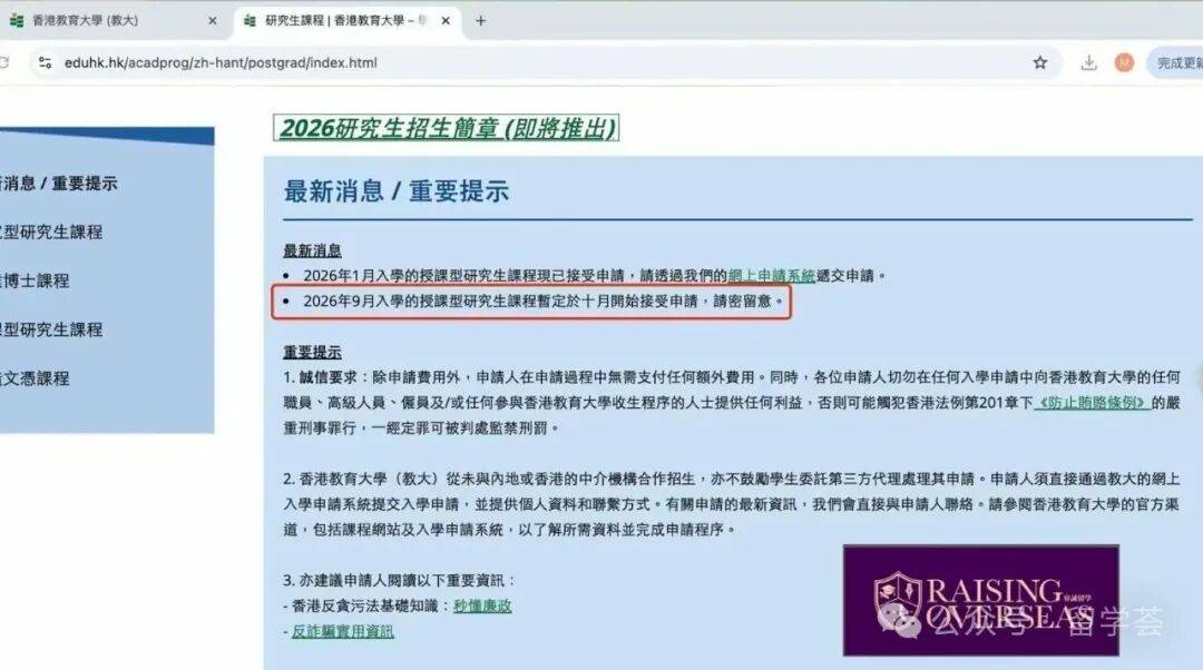 - 香港教育大学26Fall 硕士申请预警:提前开申+中文项目扩招,拿香港身份的黄金窗口期来了!10-15