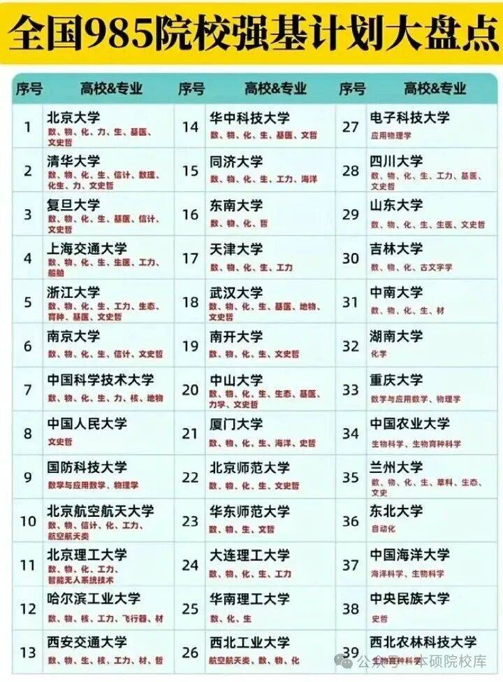 文章标题:26届39所985强基计划院校盘点,高考生降5-30分进名校的机会藏在这