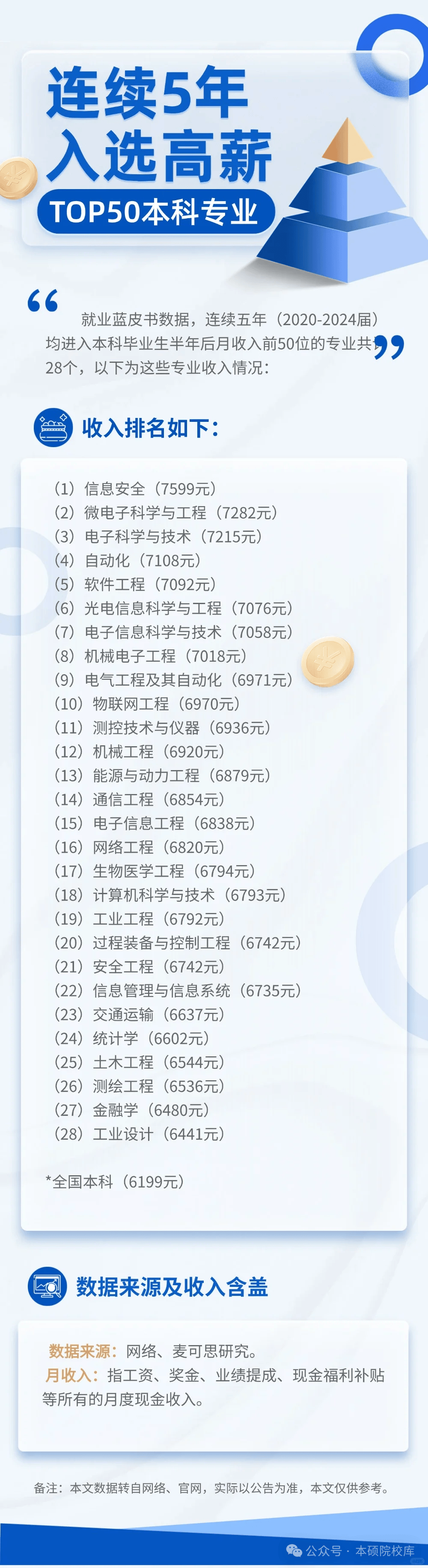 - 这些本科专业连续五年收入排名前50,堪称就业“长红”专业!12-03