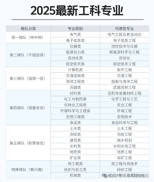 与其瞎听“学长学姐经验”,不如直接看行业硬数据。结合2025年企业招聘需求、薪资水平和就业稳定性,我整理了一份“工科专业金字塔”,从“闭眼冲”到“慎之又慎”分了5个梯队,每个都附真实案例,高考生和家长直接抄作业就行!