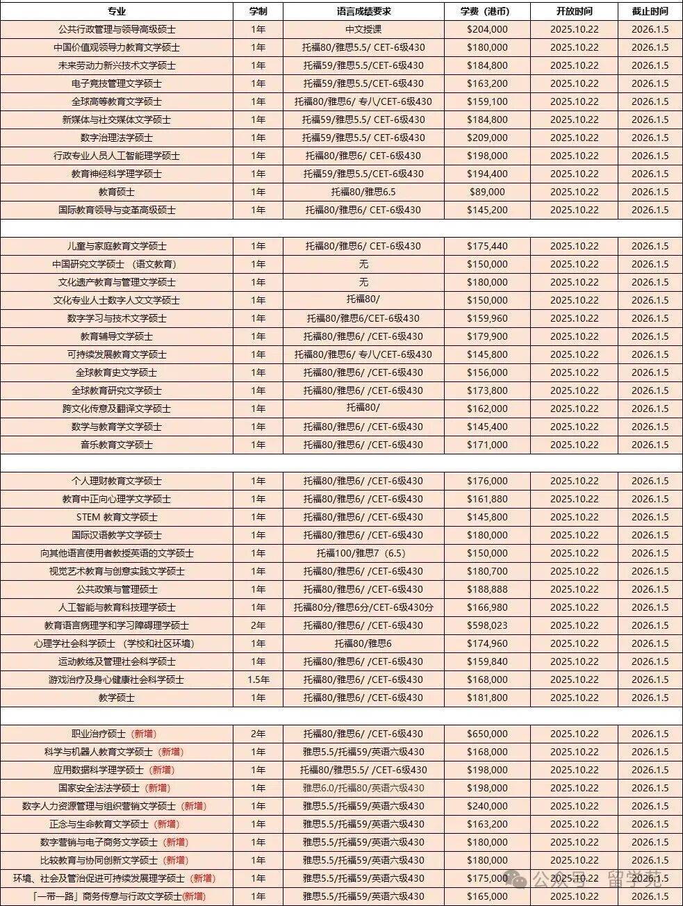 - 香港教育大学这12个硕士专业不用语言成绩也能申?附26fall各专业申请时间汇总12-19